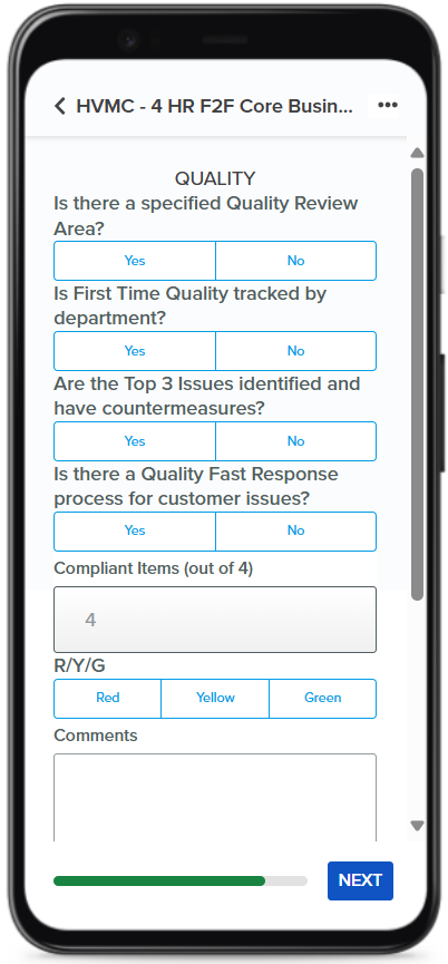 To capture and analyze assessment data quickly and efficiently, HVM leverages a user-friendly digital platform powered by GoCanvas. This mobile-enabled tool allows the assessor to input real-time observations, measurements, and notes during the site visit. The system automatically organizes the data into clear visual dashboards and reports that highlight performance strengths, gaps, and opportunities.